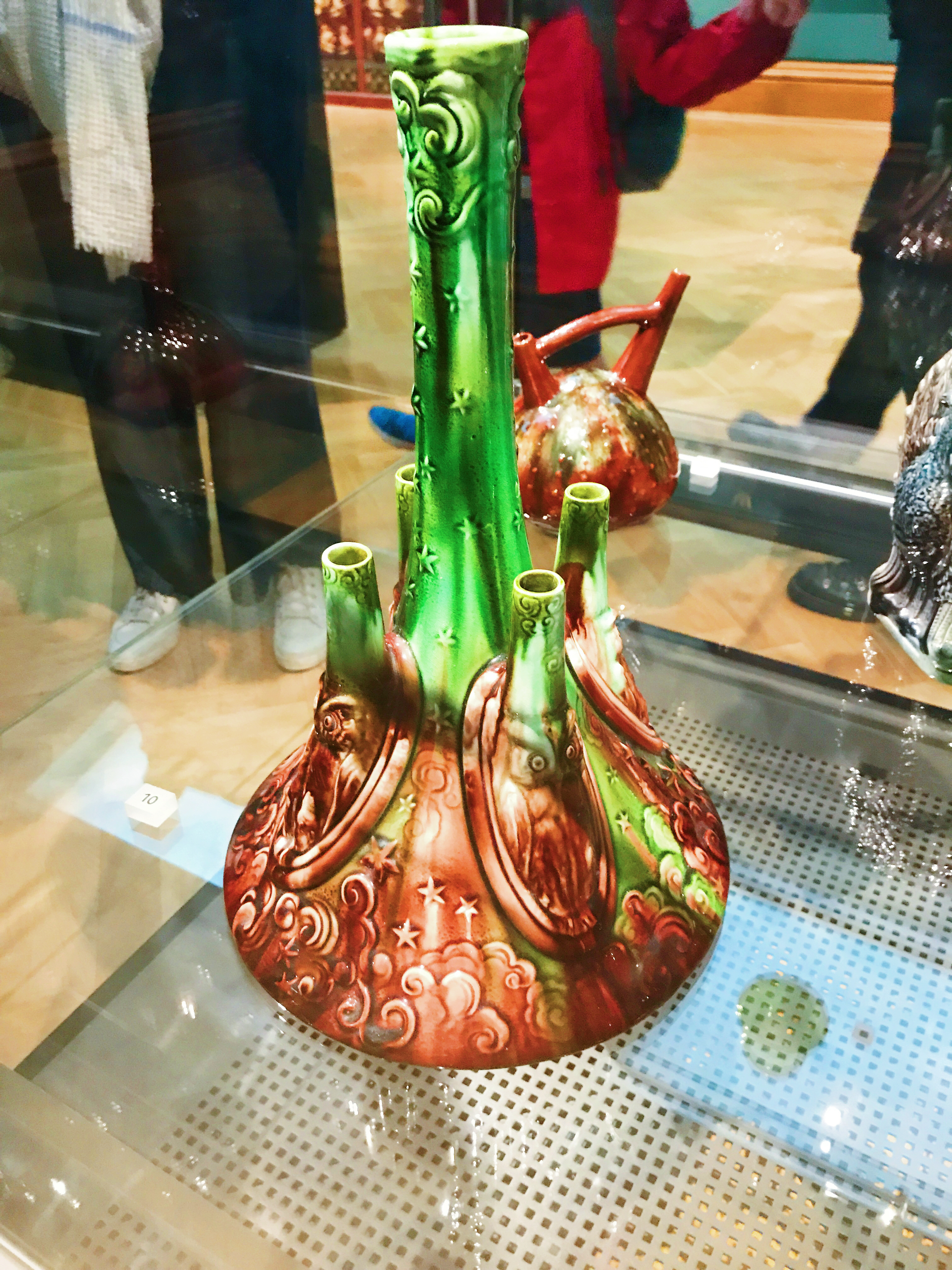 In the Ashmolean Museum, I saw a impressive artwork that is vase. It have beautiful appearance—colorful, chic and featured. This work was called “Owl” vase , which was done by an English designer, Christopher Dresser. He was a designer and design theorist, now widely known as one of the first and most important, independent designers. He wrote a series of articles that appeared in the Art Journal in 1857, “Botany as Adapted to the Arts and Art Manufactures”. He caused us to pay attention to the plant aesthetics of the vase. He used the vase as an artifact, blending the opposites – east and west, minerals and vegetables, practical and artistic, wild and civilized.